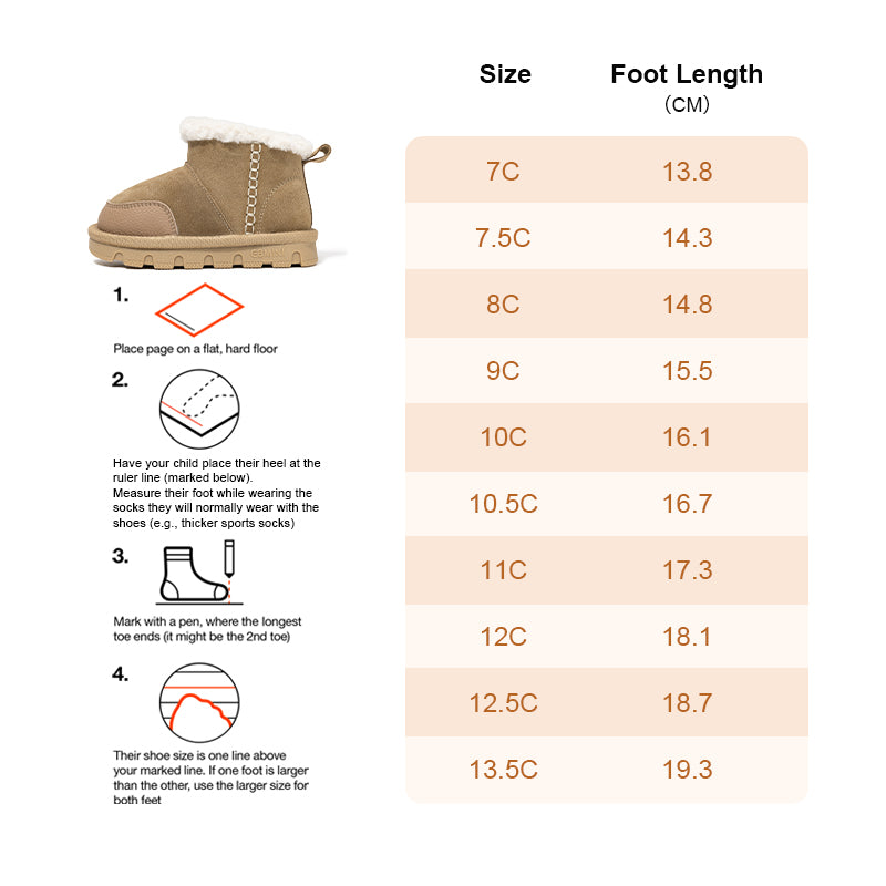 Plush lining keeps little feet warm and cozy, even on the coldest winter days.