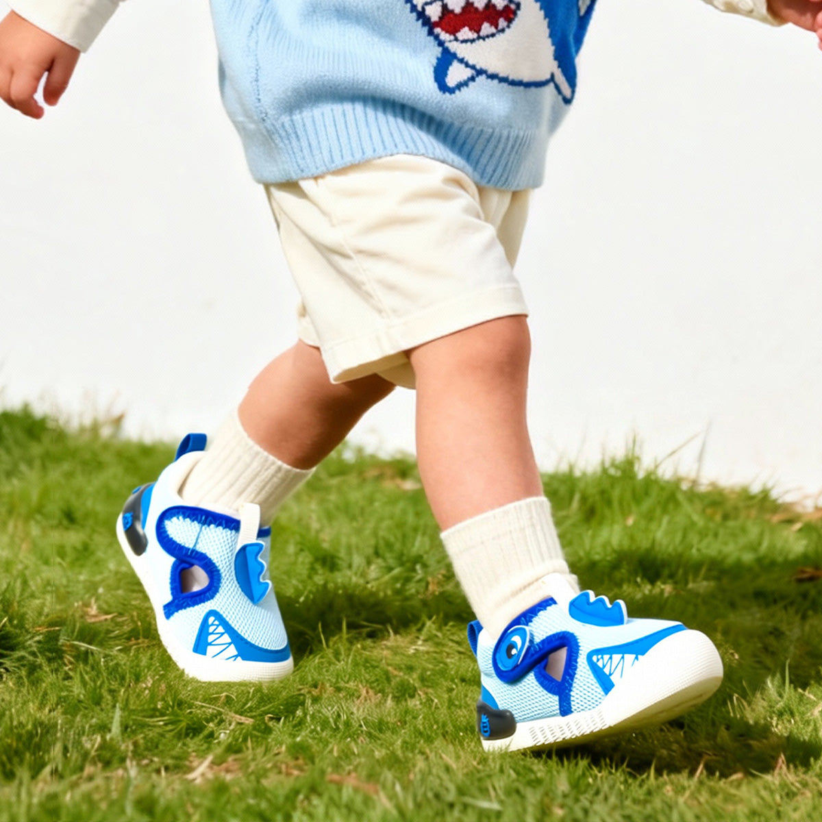 Children Walking Shoes - Breathable Mesh, Velcro Strap, Dinosaur Decor