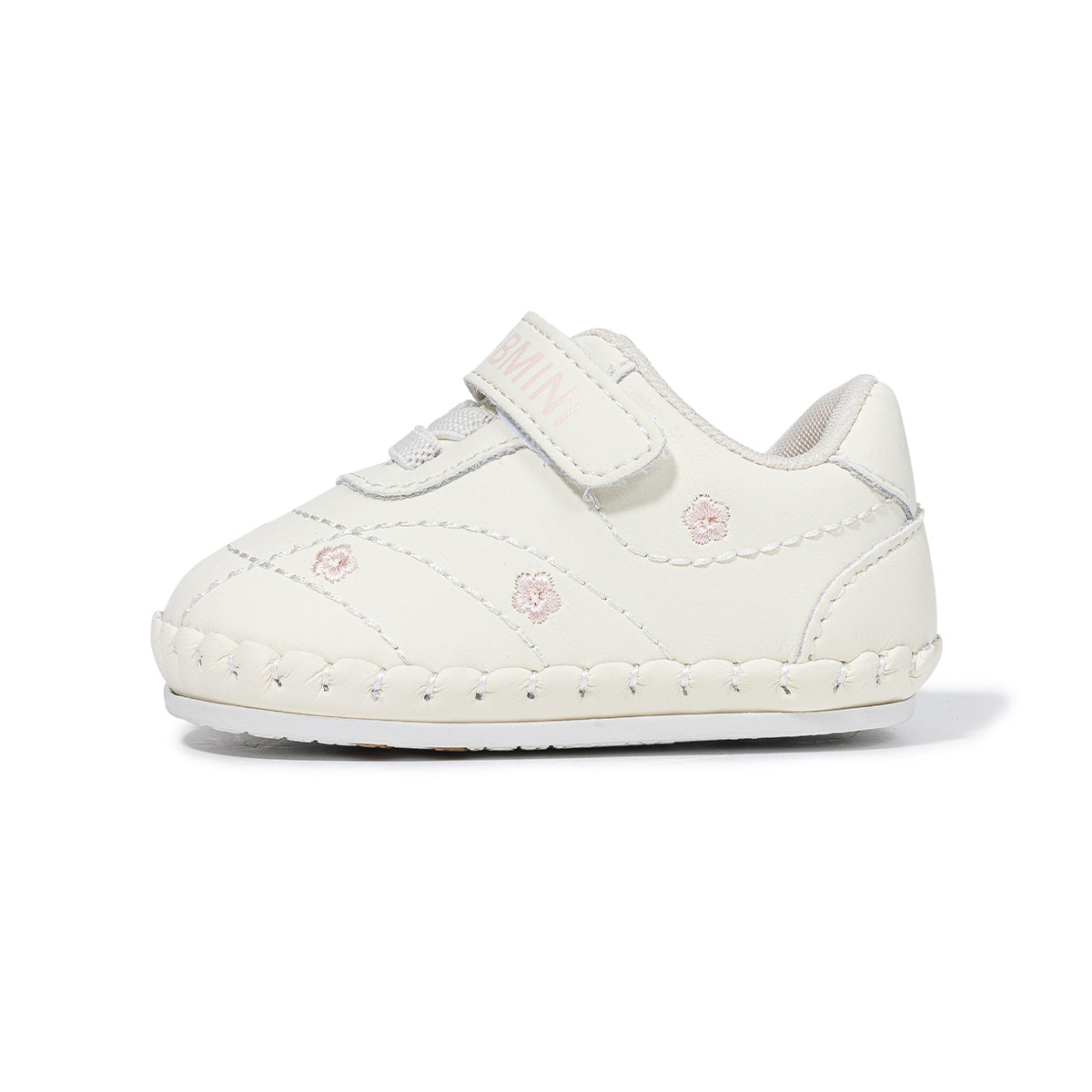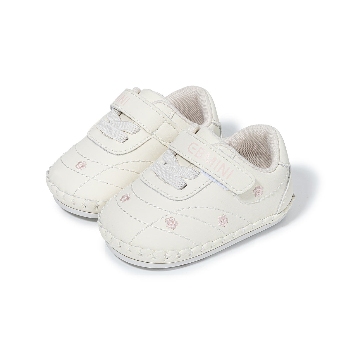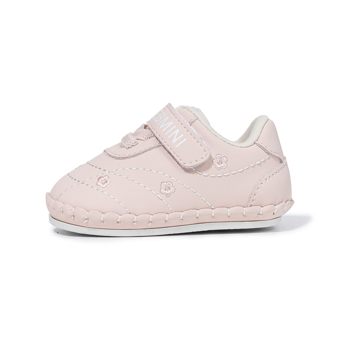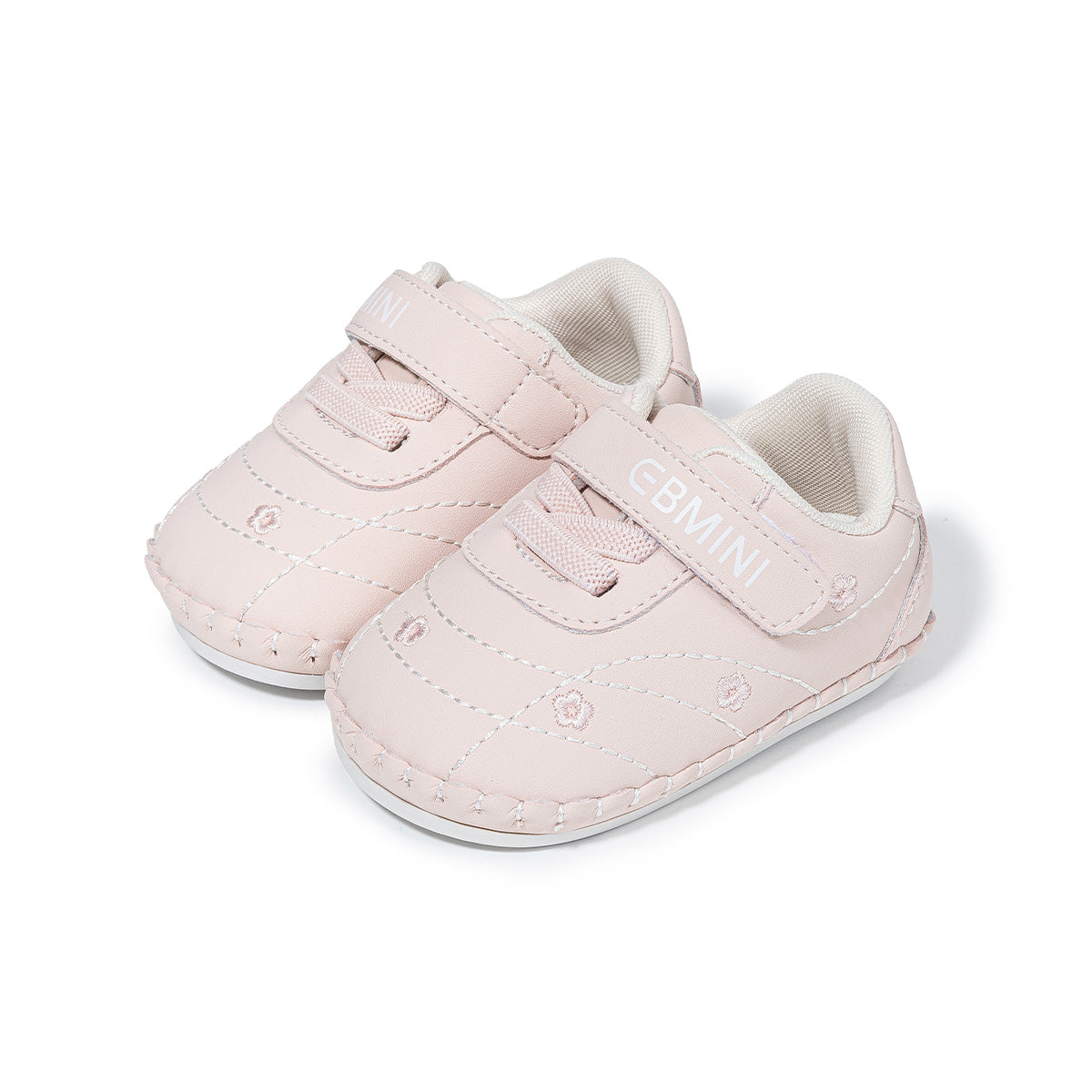 Lightweight baby walking shoes feature soft sole, Velcro strap, and flower embroidery. Designed for comfort and ease, ideal for early walkers and daily wear.