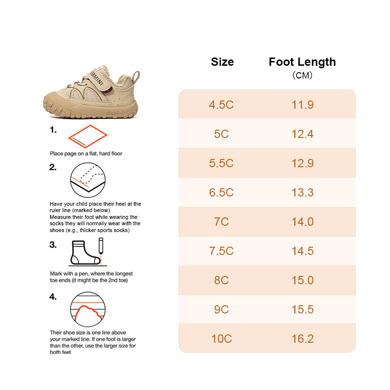 1.Take a pair of your child’s shoes that currently fit well—any brand or style works.