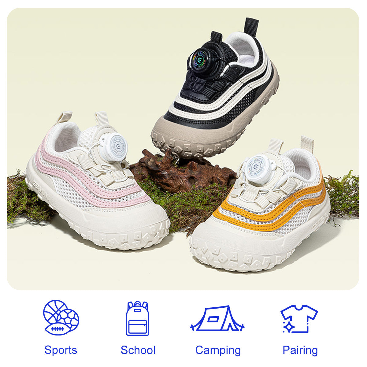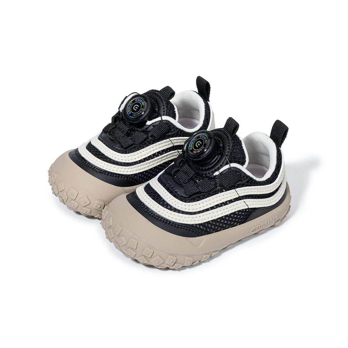 EBMINI Toddler Sneakers - Black White Stripe | Rotary Buckle | Non-Slip | Free US Shipping