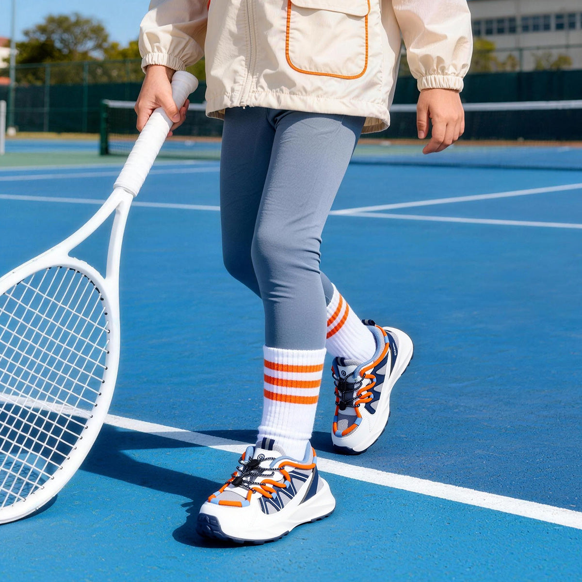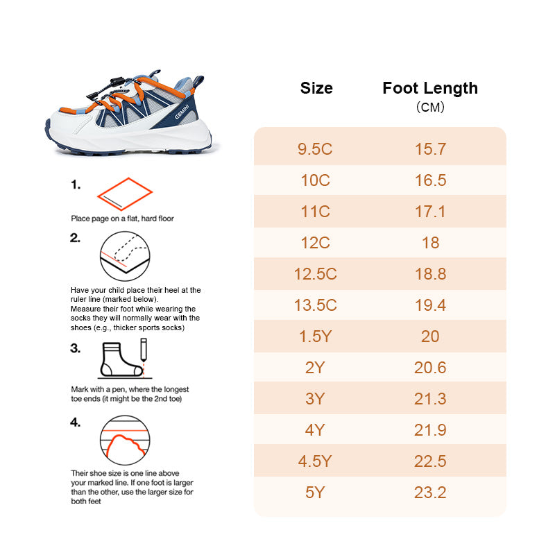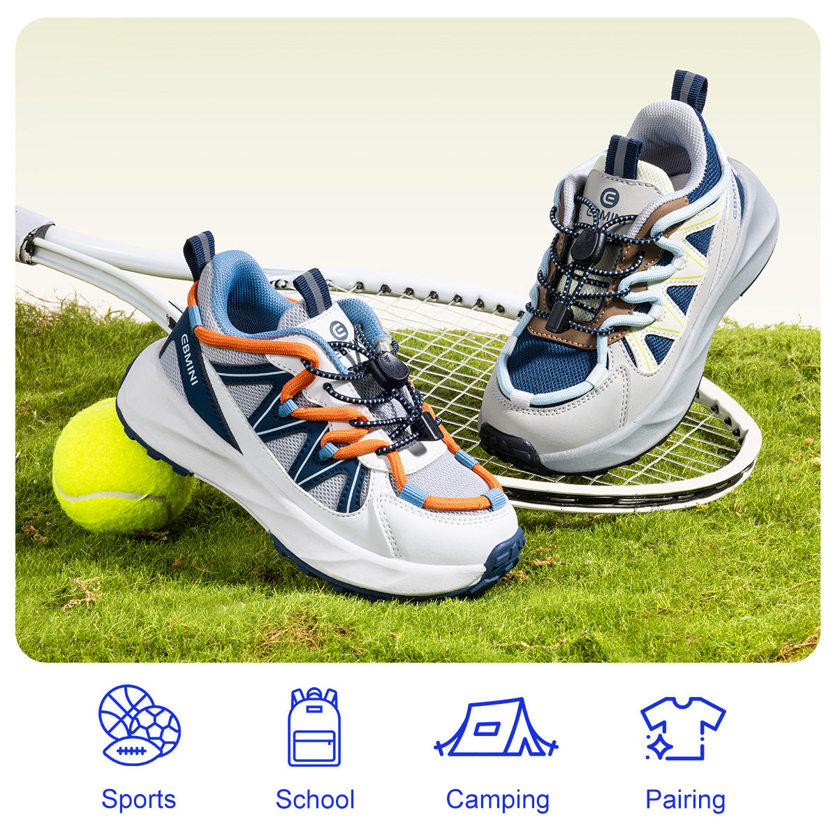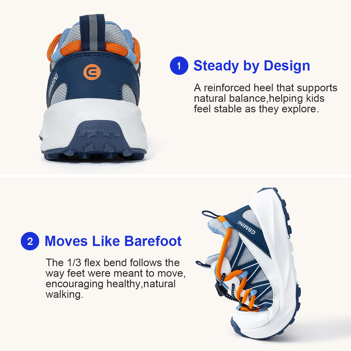EBMINI Toddler Sneakers - White Blue Orange Rotary Buckle | Hiking Style | Breathable Mesh | Non-Slip | Free US Shipping
