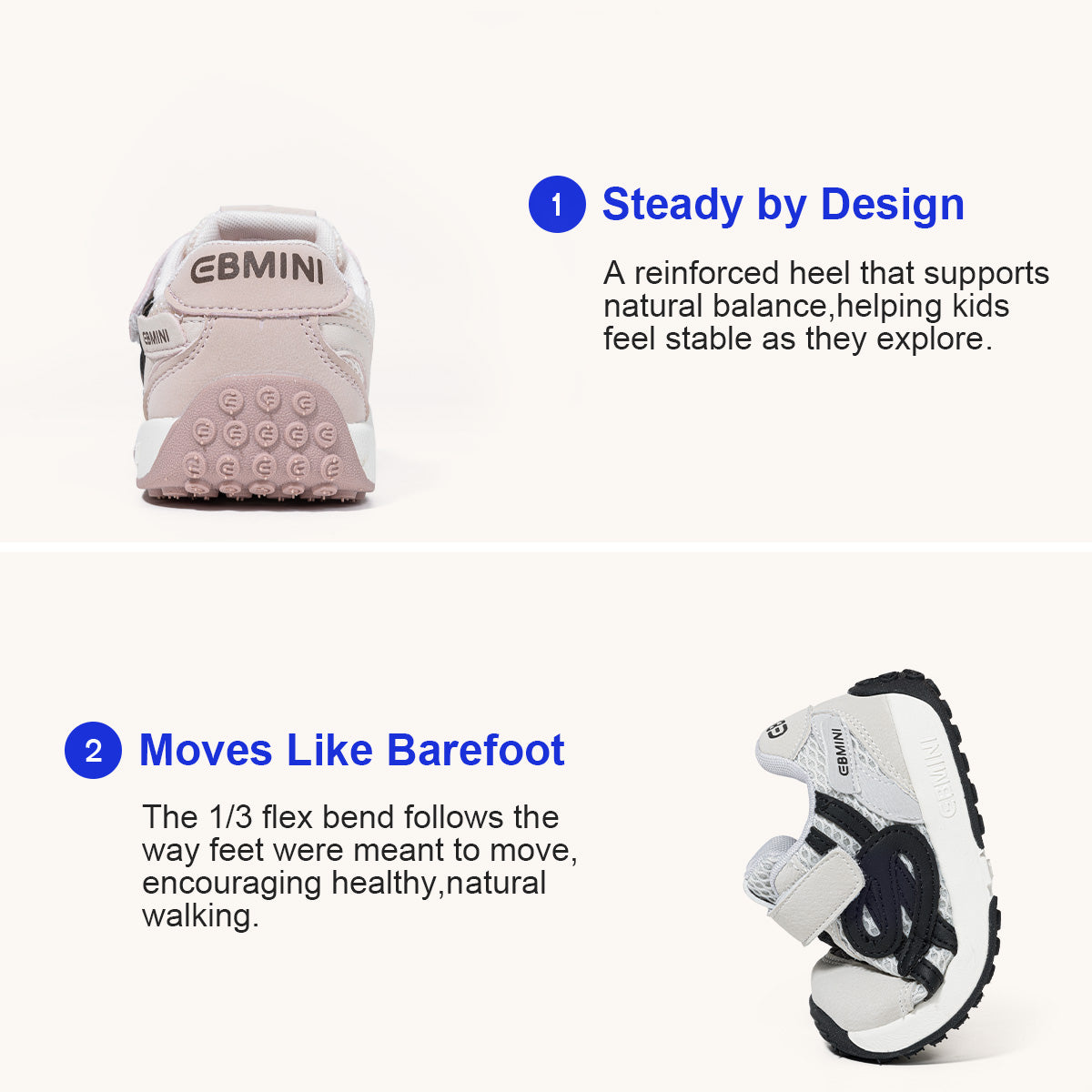 ✓ Wide toe box – Allows toes to spread naturally for healthy growth.
