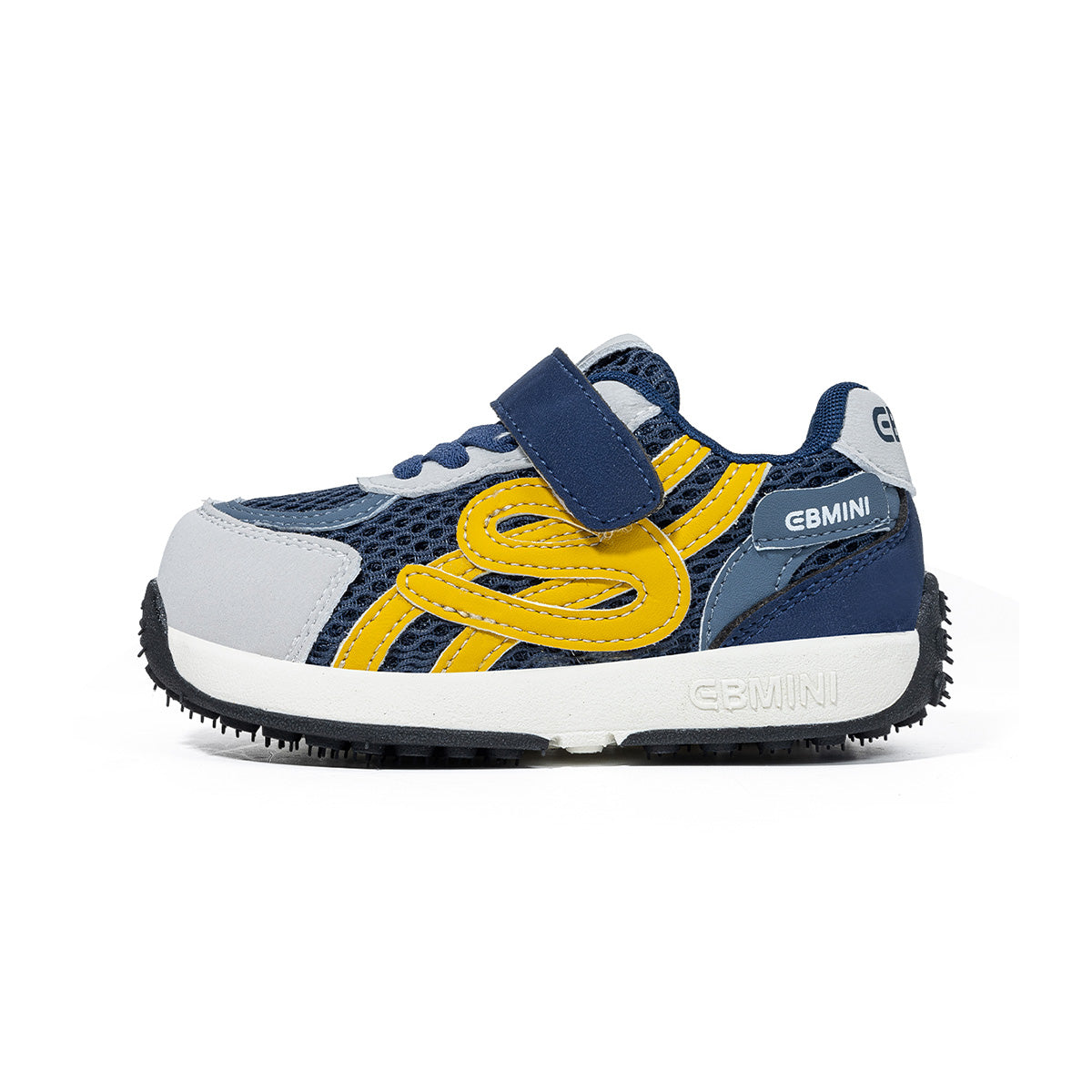 EBMINI Navy Blue Yellow Colorblock Mesh Toddler Sneakers | Breathable Non Slip First Walker School Shoes