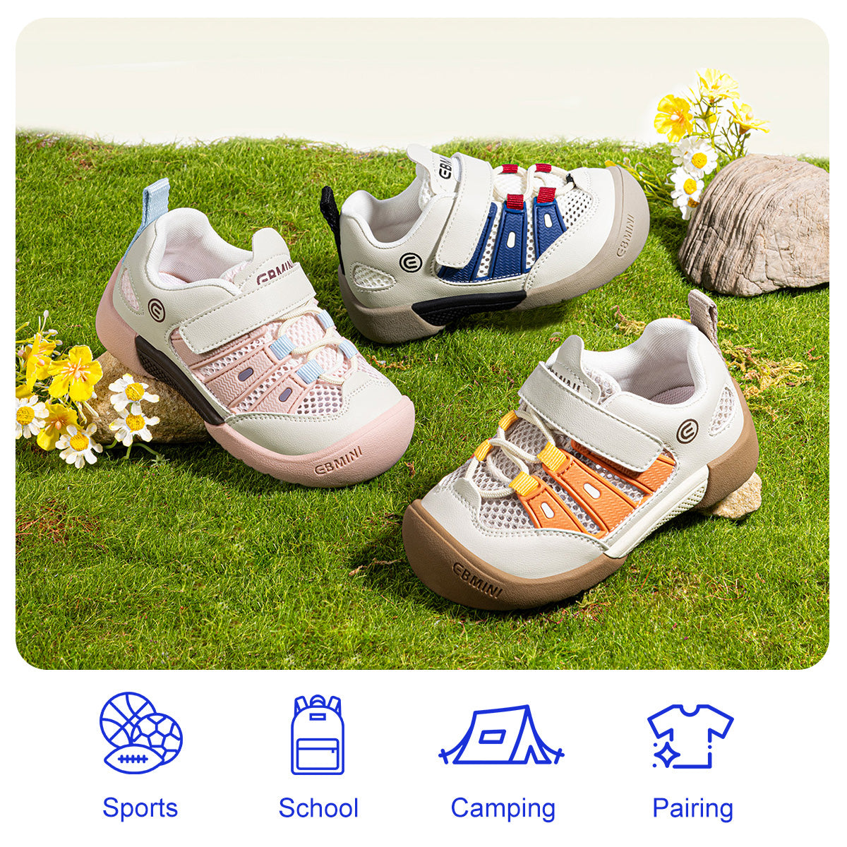 Kids Outdoor Sneakers - Breathable Mesh, Antibacterial, Multi-Color