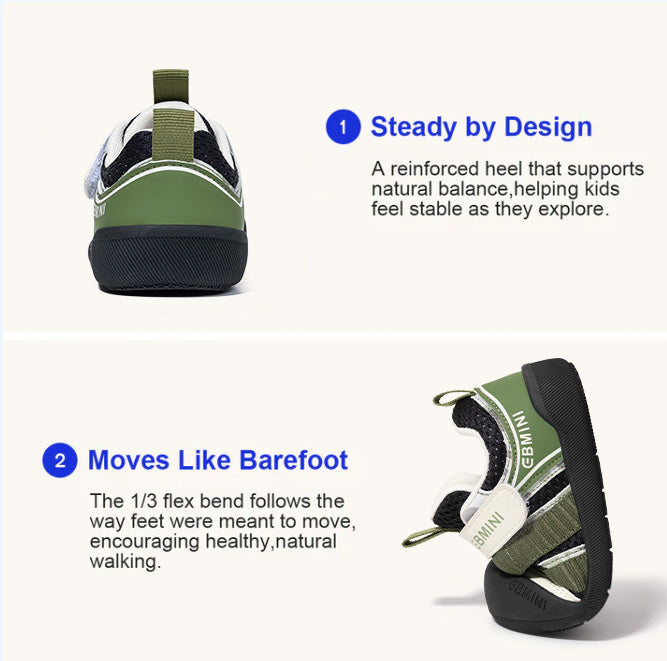 xperience natural movement with these EBMINI lightweight barefoot shoes for kids, designed to support healthy foot development through scientifically engineered features. The ultra-lightweight design feels almost weightless, providing exceptional comfort for all-day wear. The zero drop sole promotes natural walking posture and encourages proper foot alignment from the ground up. The extra-wide toe box allows toes to spread naturally, supporting healthy foot development and preventing toe crowding. The flexible sole provides essential ground feedback for better balance and coordination. Breathable materials keep feet cool and dry throughout active play. The natural foot development design strengthens foot muscles during crucial growing years. The durable construction is built to last through active play and everyday adventures. Easy on/off design makes quick dressing for busy mornings effortless. That award-winning design has been recognized for its innovative approach to children's footwear. Available in beautiful colors (pink, green, tawny) and sizes 7.5C-13.5C, these shoes combine lightweight comfort with scientific design for optimal foot health. Try EBMINI risk-free with 30-day money back guarantee and free returns, with free shipping on orders over $50.